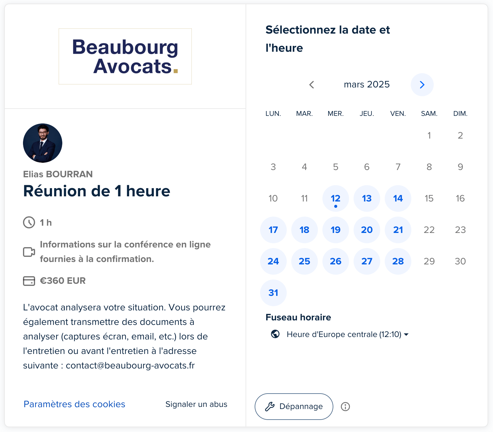 Réservez dans le calendrier la date et l’heure qui vous convient.