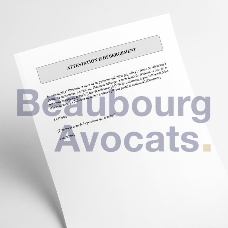 Télécharger un modèle d’attestation d’hébergement du cabinet Beaubourg Avocats, c’est choisir une expertise juridique de premier ordre.