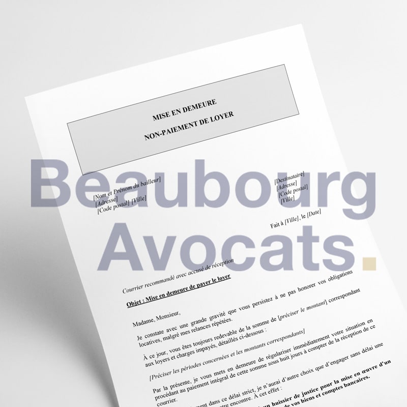 Acheter un modèle de lettre de mise en demeure pour loyer impayé du cabinet Beaubourg Avocats, c’est choisir une expertise juridique de premier ordre.