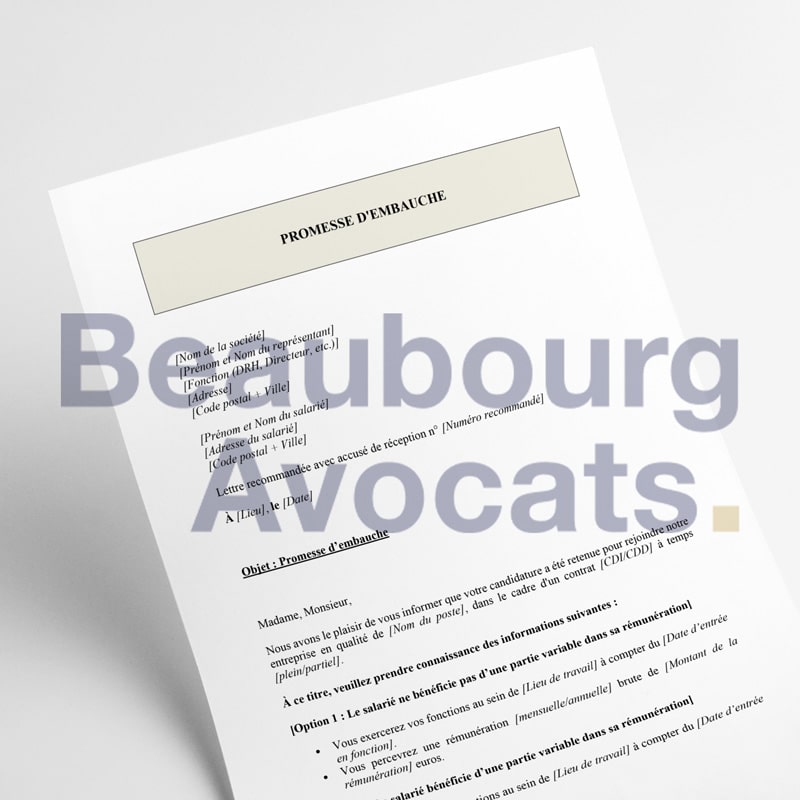 Acheter un modèle de promesse d’embauche du cabinet Beaubourg Avocats, c’est choisir une expertise juridique de premier ordre.
